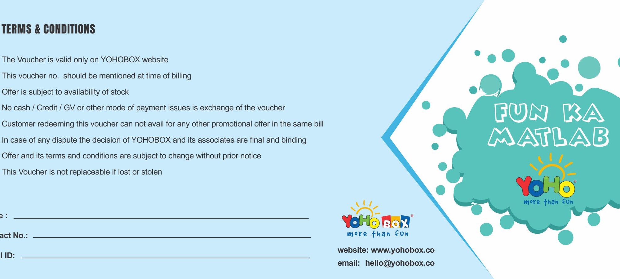 Looking for a perfect last-minute gifting option? Or, hate spending endless hours visiting store after store to find the right gift? Buy an e-gift card and send via email instantly. YOHO has e-gift cards with values starting from Rs.250 / Rs.500 / Rs.1000 / Rs.1500 to suit whatever occasion to whoever you have in mind.